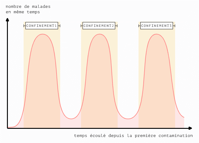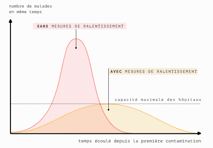 Si on part du principe qu’une grande partie de la population va de toute façon être infectée et que certains développeront des formes graves de la maladie, on peut au moins essayer d’étaler l’épidémie dans le temps, pour éviter la surcharge des hôpitaux. Plus on « aplatit la courbe », plus on soulage les services de réanimation.