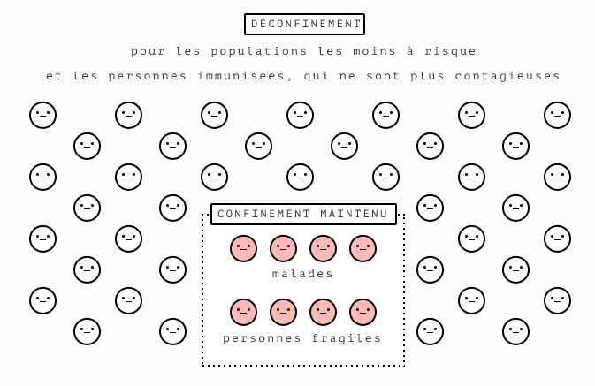 L’idée serait de diviser la population en deux. On maintiendrait en confinement :