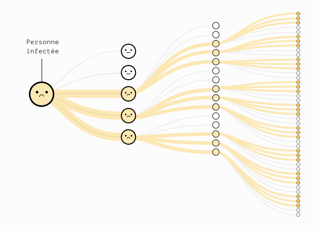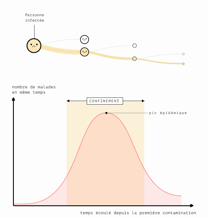 Le confinement a été décidé dans un contexte de propagation exponentielle du virus. Mi-mars, on estime que chaque malade pouvait contaminer en moyenne trois personnes.