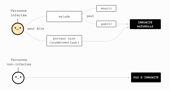 Si l’on vise une disparition complète du SARS-CoV-2, il faut que la population soit immunisée – c’est-à-dire que le système immunitaire des gens soit préparé à résister à une nouvelle agression du virus. Or, seules les personnes qui ont été en contact avec le virus – et qui ont survécu – ont produit les anticorps nécessaires à cette protection.