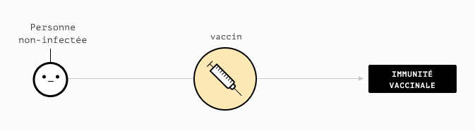 Il existe en théorie une seconde possibilité qui « force » les choses : la vaccination. On introduit une forme inactive ou atténuée du virus dans l’organisme du patient, pour stimuler ses défenses. Cela lui permet de développer une immunité sans avoir été malade :