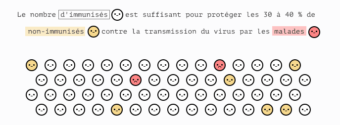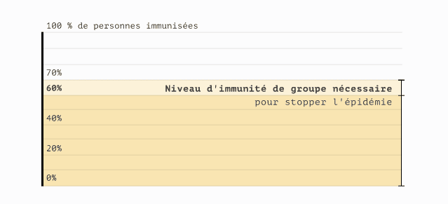 Heureusement, il n’est pas nécessaire que l’ensemble de la population soit immunisé pour éviter que le virus circule de manière épidémique. Selon les spécialistes, une proportion de l’ordre de 60 % à 70 % de la population pourrait suffire dans le cas du SARS-CoV-2.