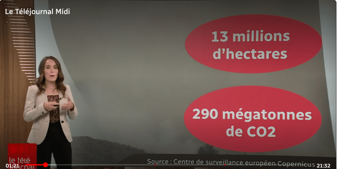 Cependant, la suite de la présentation a débuté par une erreur importante qui ne rend pas du tout compte de l’énormité des émissions issues de ces incendies ni de la grave urgence de la situation.